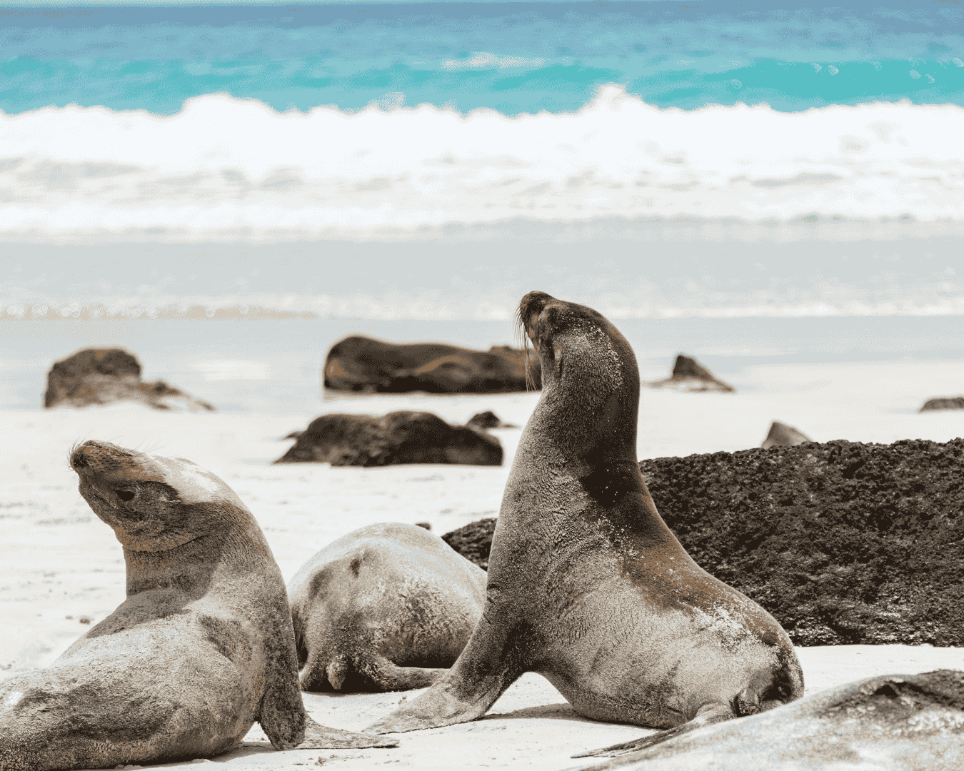 Especies a Observar: Leones Marinos (Zalophus wollebaeki): Es muy común encontrar grupos descansando en la arena o jugueteando en las olas. ¡Recuerda mantener una distancia respetuosa de al menos 2 metros!